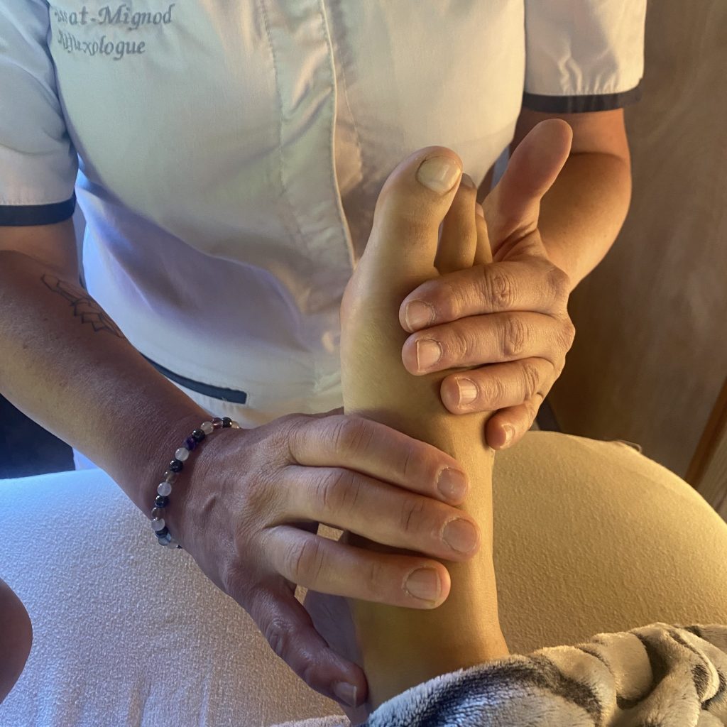 Stimulation de points et zones réflexes situés au niveau des pieds permettant de soulager différents troubles et d’apporter détente et bien-être. Ma certification en Neuro-réflexologie me permet de rétablir le délicat équilibre entre la branche sympathique et parasympathique du système nerveux autonome via la sécrétion de différentes hormones.
